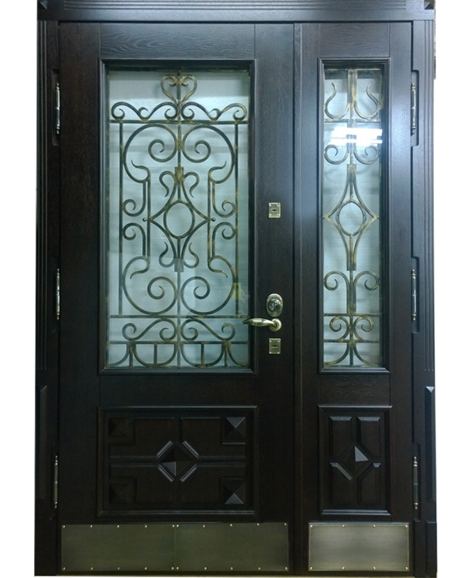 Железная входная двустворчатая дверь МДФ/МДФ 3164